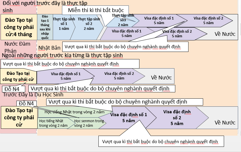 Đối với những người trước đây đã là thực tập sinh nếu như có thể lấy chứng nhận hoàn thành khóa thực tập sinh 3 năm thì không cần thi kì thi tiếng Nhật điều kiện