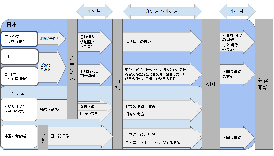 その後は引き続き弊社スタッフが定期的にお伺いし、受入企業様と人材のサポートをさせて頂きます。